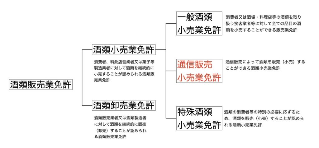 定義:「通信販売酒類小売業免許」は、インターネットやカタログなどを使って、2つ以上の都道府県にまたがる広範囲の消費者にお酒を小売するための免許です。