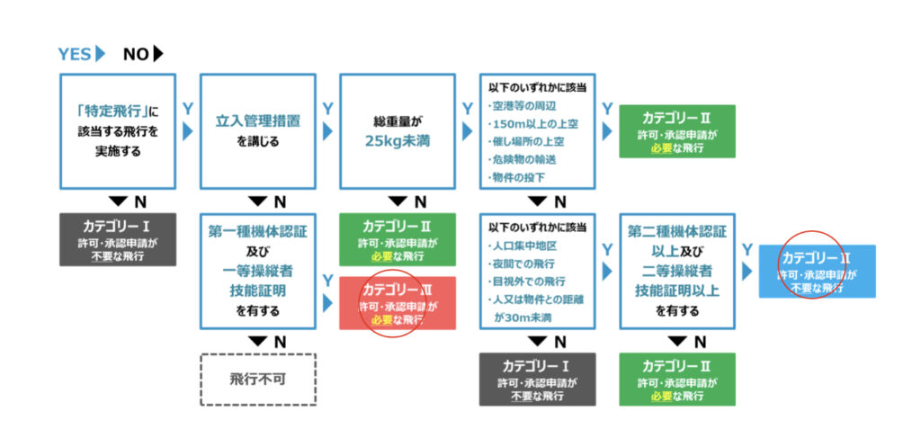 赤丸の部分はカテゴリⅢとカテゴリⅡとなり技能証明が必要となります。