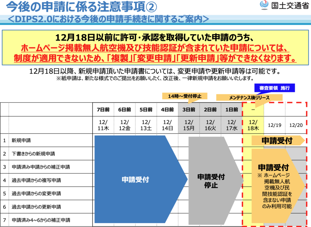 - システム停止期間: 12月15日〜18日の間、DIPS 2.0でのすべての申請受付が停止されます。